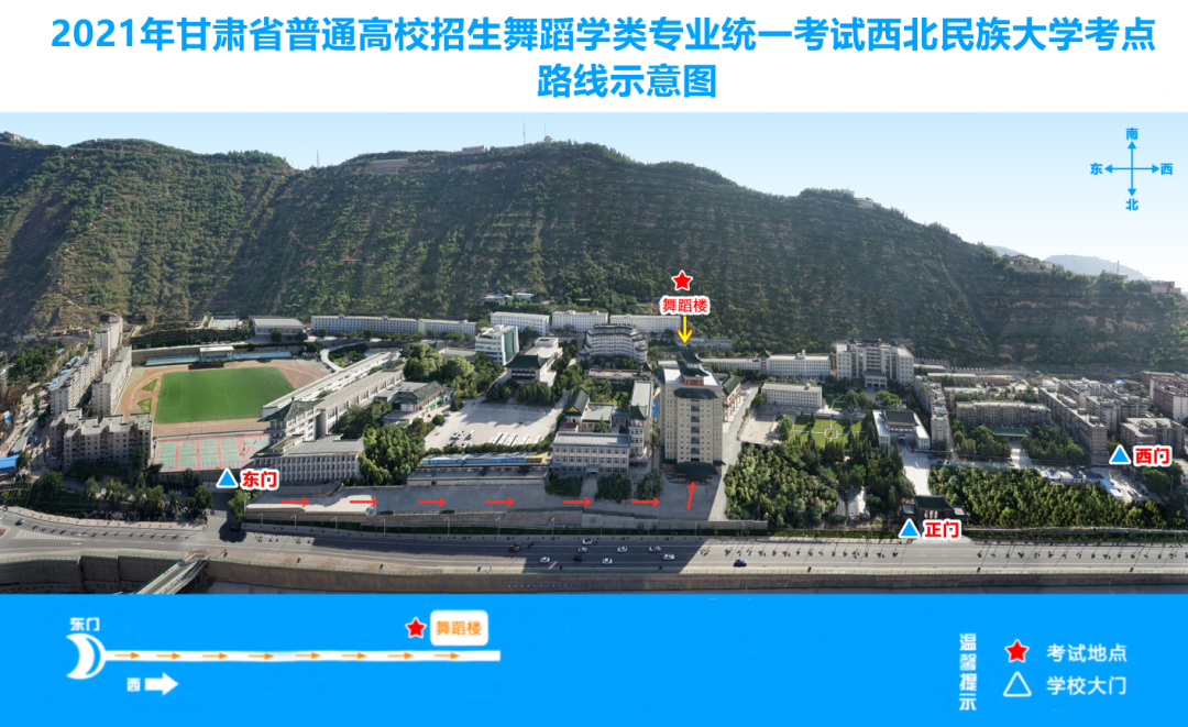 考生須于考試時(shí)間提前一小時(shí),持身份證、報(bào)名登記表、省藝術(shù)類(lèi)準(zhǔn)考證、考試前一天健康出行碼、行程卡等證件,由西北民族大學(xué)西北新村校區(qū)東門(mén),經(jīng)體溫檢查后由工作人員統(tǒng)一引導(dǎo)進(jìn)入校園,前往舞蹈樓906、907室候考??荚噮^(qū)域?qū)嵭虚]環(huán)管理,考生不得從其他校門(mén)進(jìn)出。