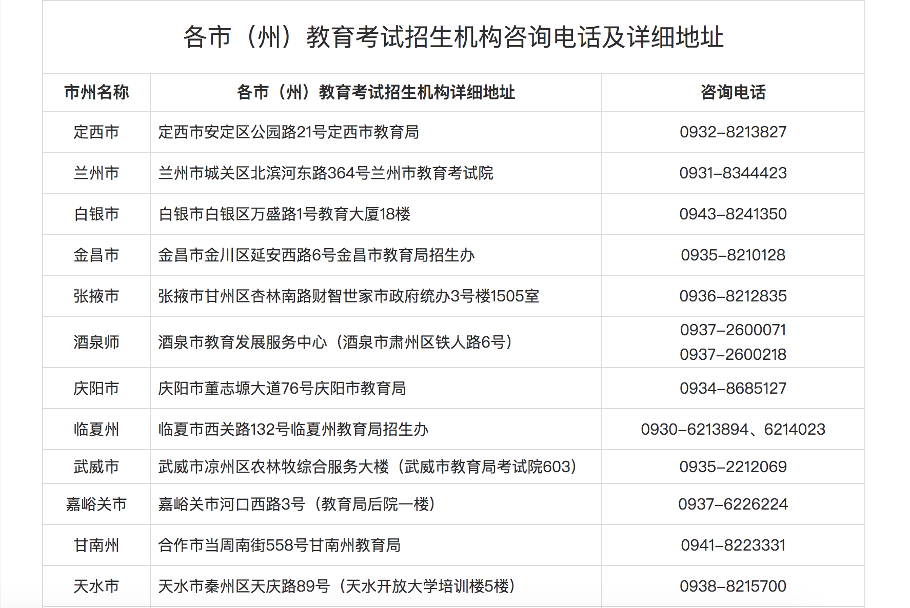 各市(州)教育考試招生機構(gòu)咨詢電話及詳細地址
