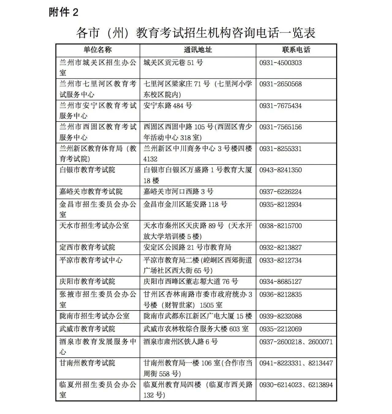 2.各市(州)教育考試招生機(jī)構(gòu)咨詢電話一覽表