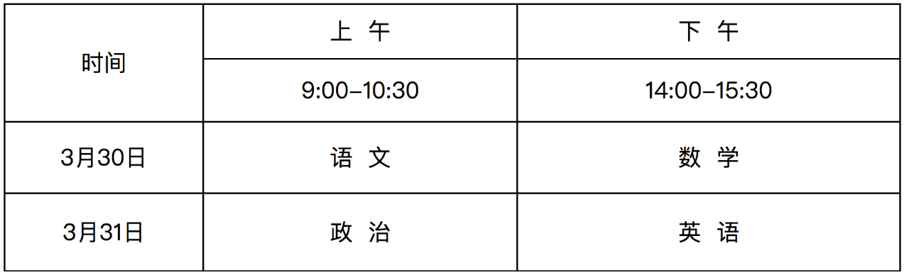 (三)考生依據(jù)準(zhǔn)考證上的考點(diǎn)信息于3月30日、31日參加文化考試。
