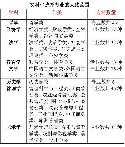 從整體上來(lái)看,文科生可選擇的專(zhuān)業(yè)主要集中在哲學(xué)、經(jīng)濟(jì)學(xué)、法學(xué)、教育學(xué)、文學(xué)、歷史學(xué)、管理學(xué)、藝術(shù)學(xué)等8個(gè)學(xué)科門(mén)類(lèi)。