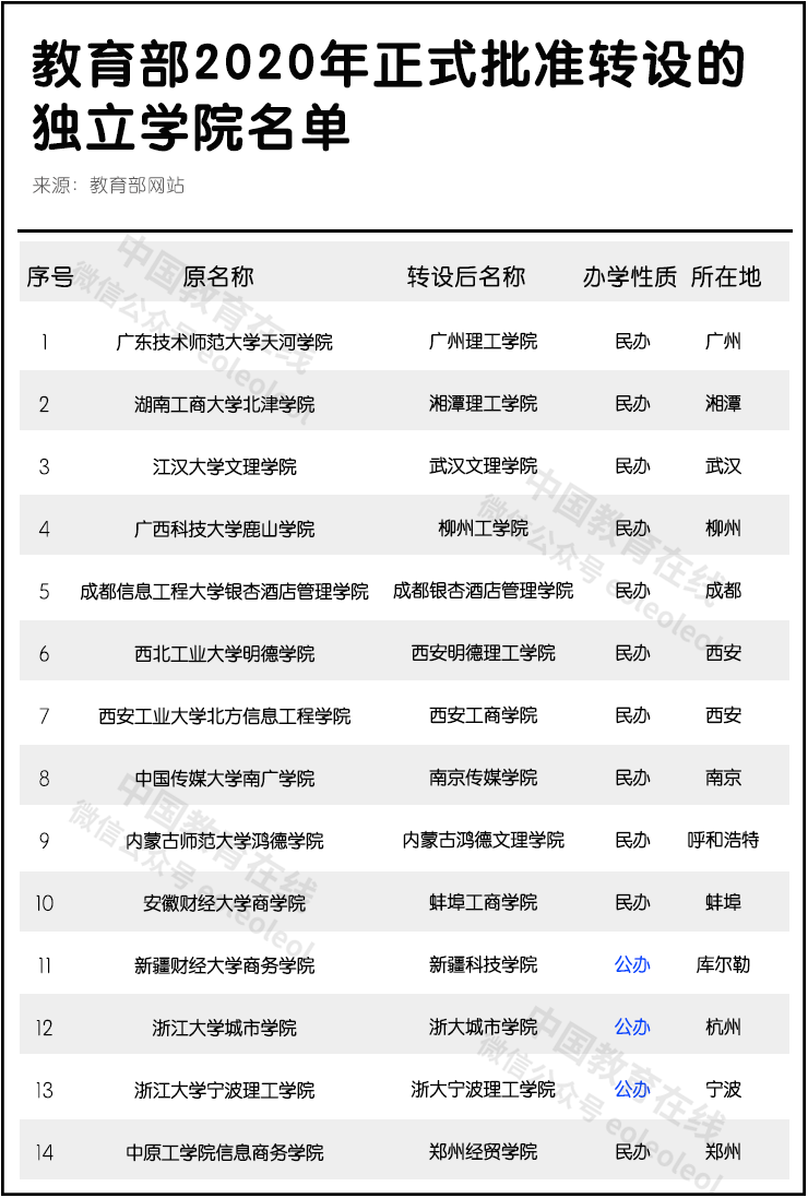 注意到,2020年至今(截至2021年2月2日),教育部已同意47所獨(dú)立學(xué)院轉(zhuǎn)設(shè)更名。(不含上述兩所學(xué)校)