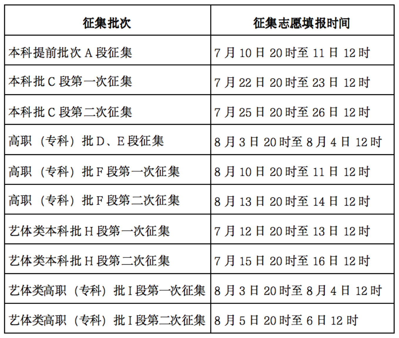 除本科批(B段)、藝術(shù)、體育類(lèi)本科提前批(G段)等兩個(gè)批次不實(shí)行征集志愿外,其他批(段)次均實(shí)施征集志愿。