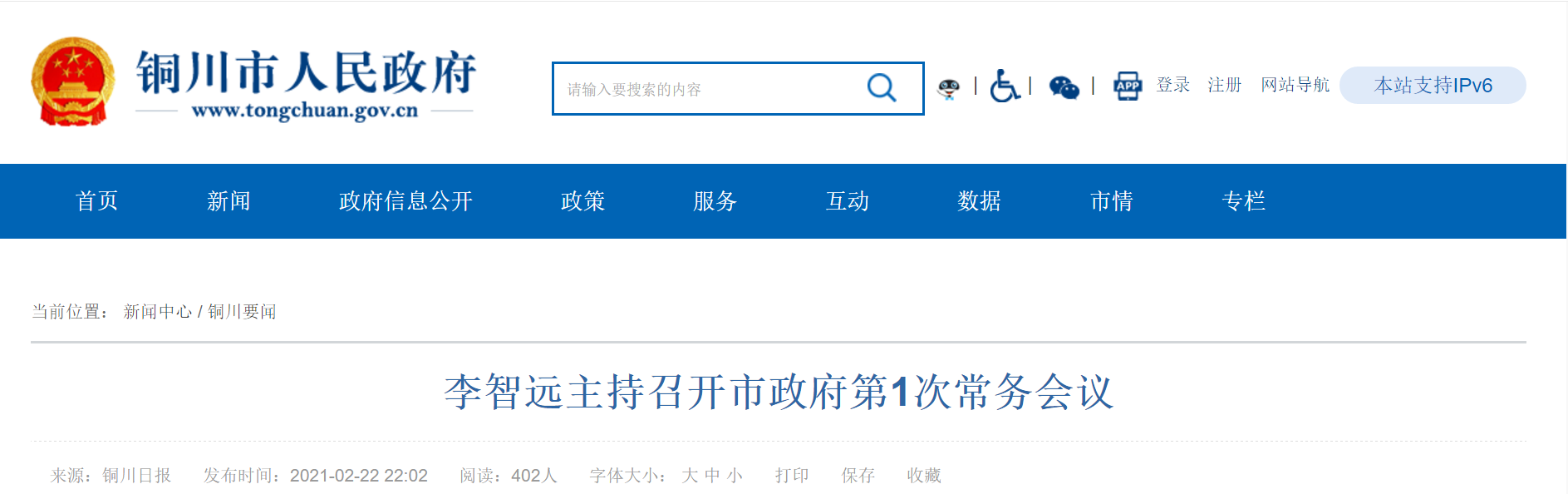 近日,銅川市人民政府召開了市政府第一次常務會議。