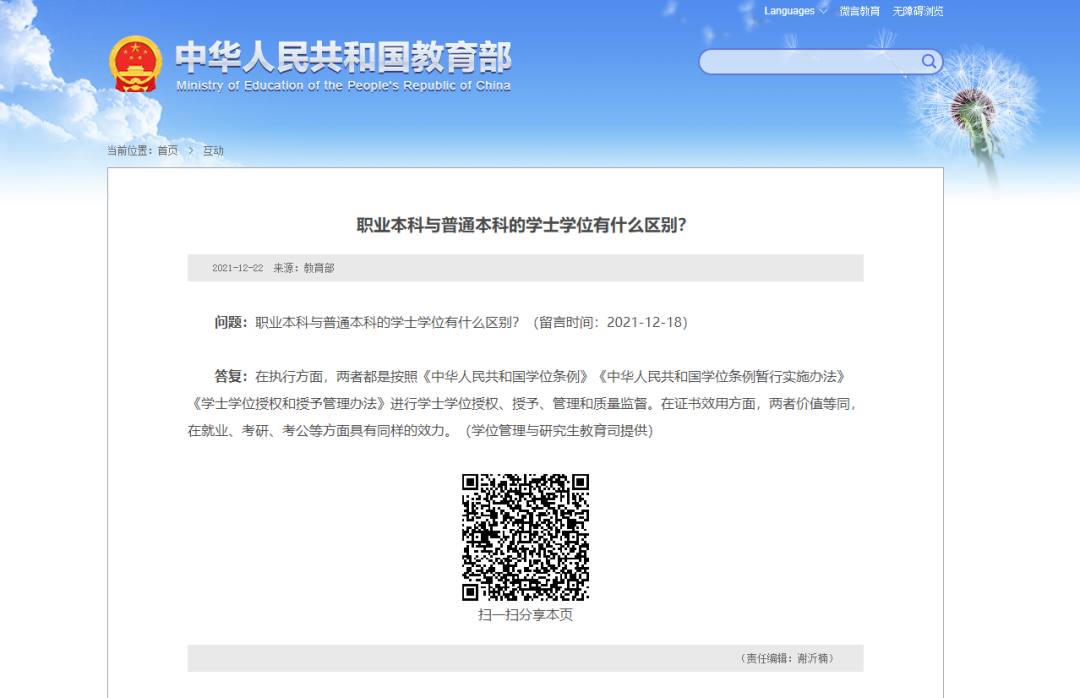 問:職業(yè)本科與普通本科的學(xué)士學(xué)位有什么區(qū)別?(留言時(shí)間:2021-12-18)