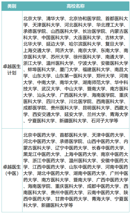 卓越醫(yī)生教育培養(yǎng)計劃試點(diǎn)高校名單(部分)