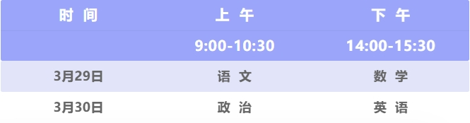 三、考試科目:語文、數(shù)學(xué)、政治、英語;考試分值:每科150分,總分600分,使用國家通用語言文字作答。