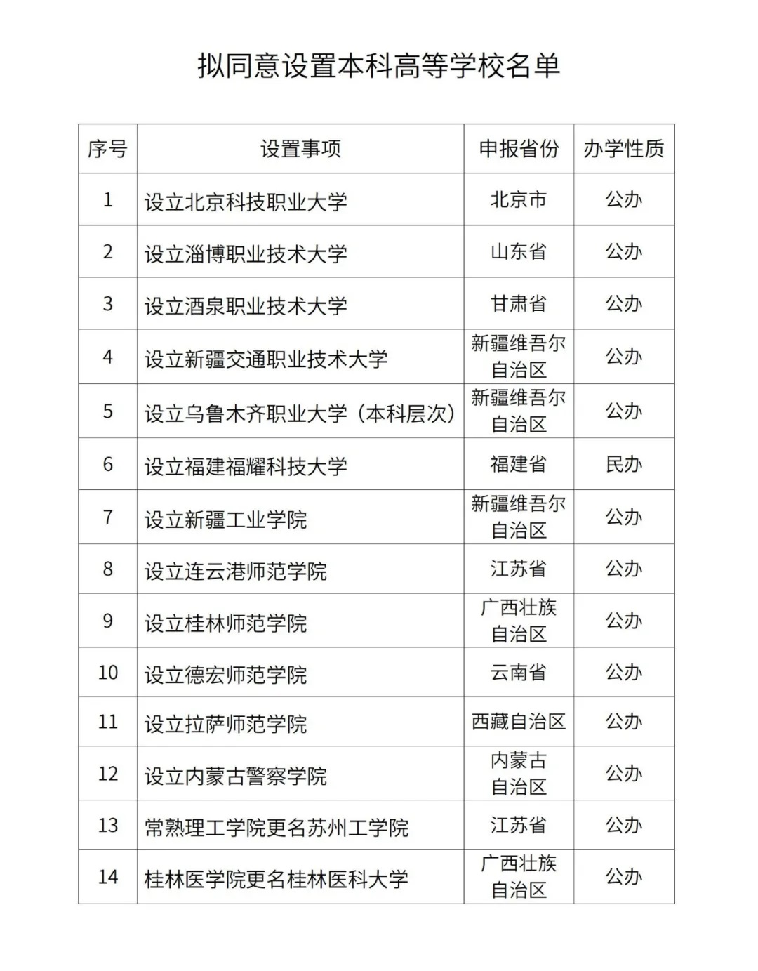 擬同意設(shè)置北京科技職業(yè)大學(xué)等14所學(xué)校