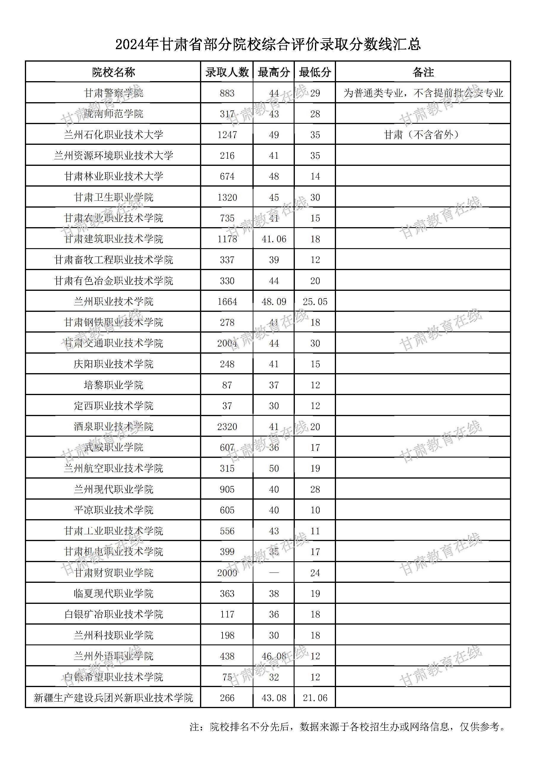 甘肅省部分院校2024年綜合評價錄取分數(shù)線匯總