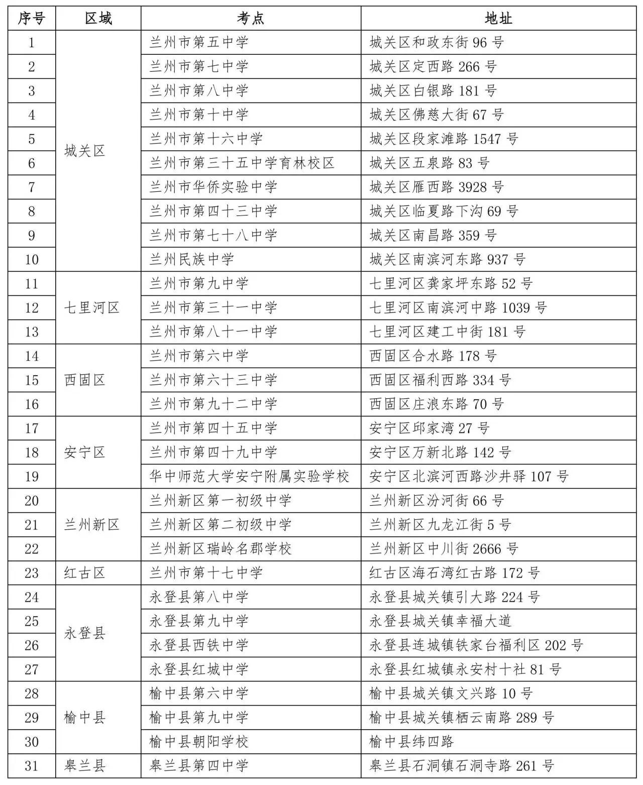 緩考考點(diǎn):蘭州民族中學(xué)