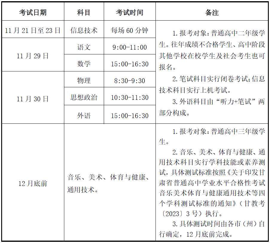 附件:2025年冬季甘肅省普通高中學(xué)業(yè)水平合格性考試科目及時間安排