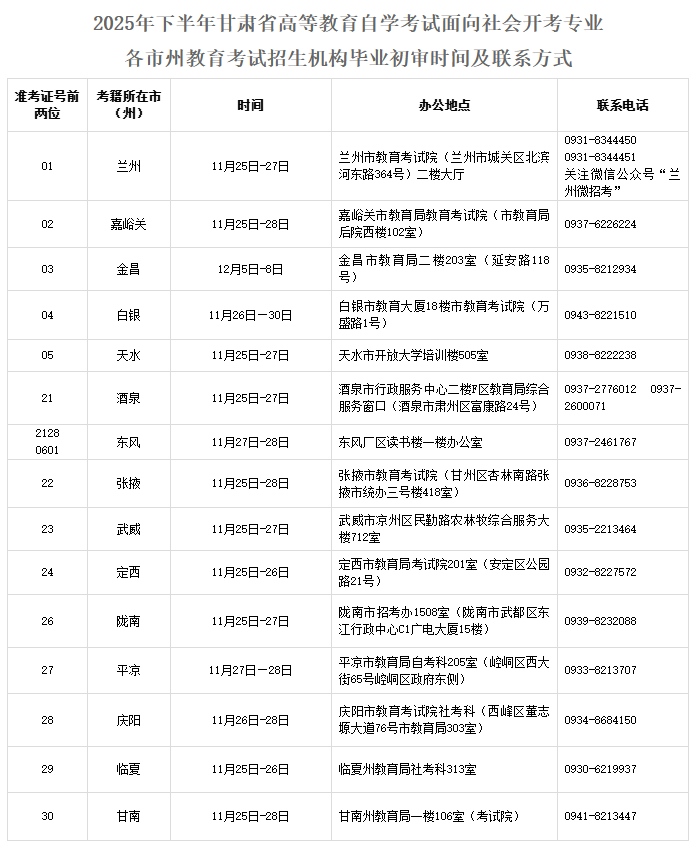 2025年下半年甘肅自考面向社會(huì)開考專業(yè)畢業(yè)初審公告