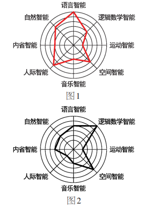 以下面兩位同學(xué)的多元智能雷達(dá)圖為例。