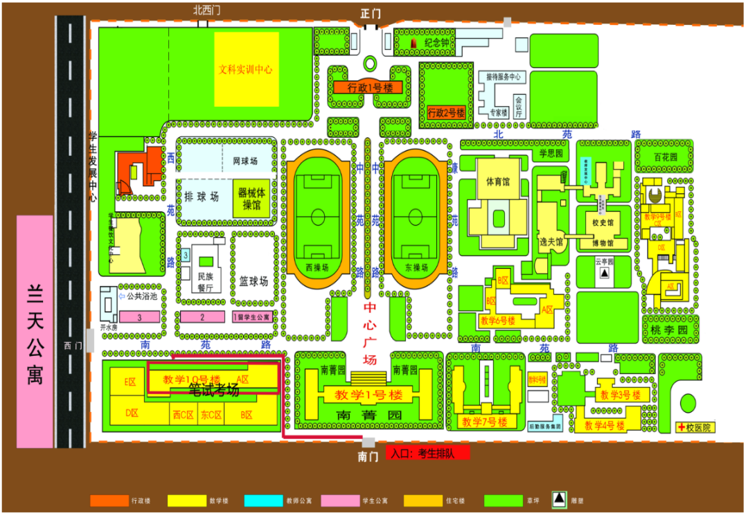 6.考試區(qū)域?qū)嵭虚]環(huán)管理,考生統(tǒng)一由西北師范大學(xué)南門進(jìn)出??忌鷳{《體育藝術(shù)類專業(yè)準(zhǔn)考證》《文化課準(zhǔn)考證》《居民身份證》《安全考試承諾書及身體健康狀況監(jiān)測表》及健康通行碼、行程卡截圖彩色打印件(或有效的核酸檢測陰性證明),按照規(guī)定的出入口及路線進(jìn)出相應(yīng)考點(diǎn)(詳見考場分布及考生入場安排、考點(diǎn)示意圖)。