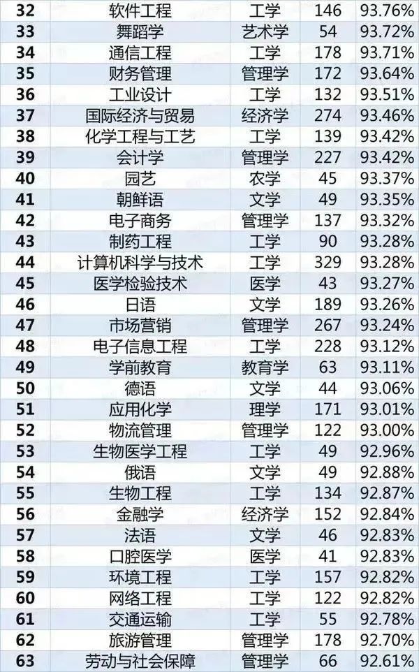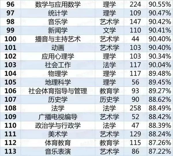 2020年113個(gè)本科就業(yè)率排行