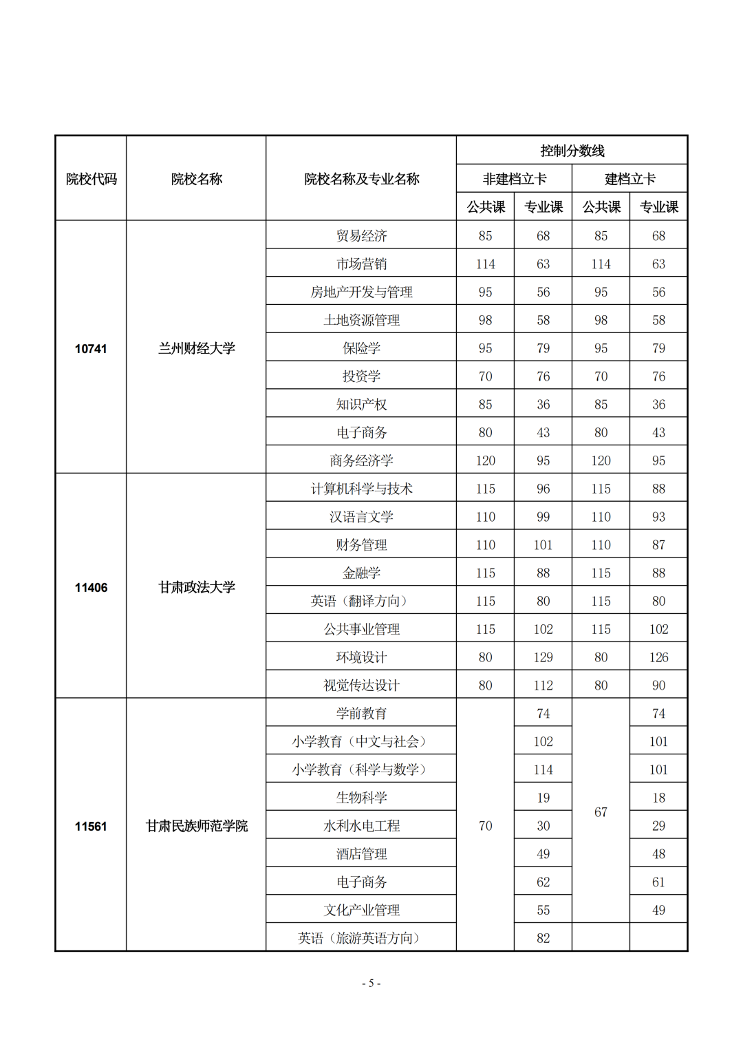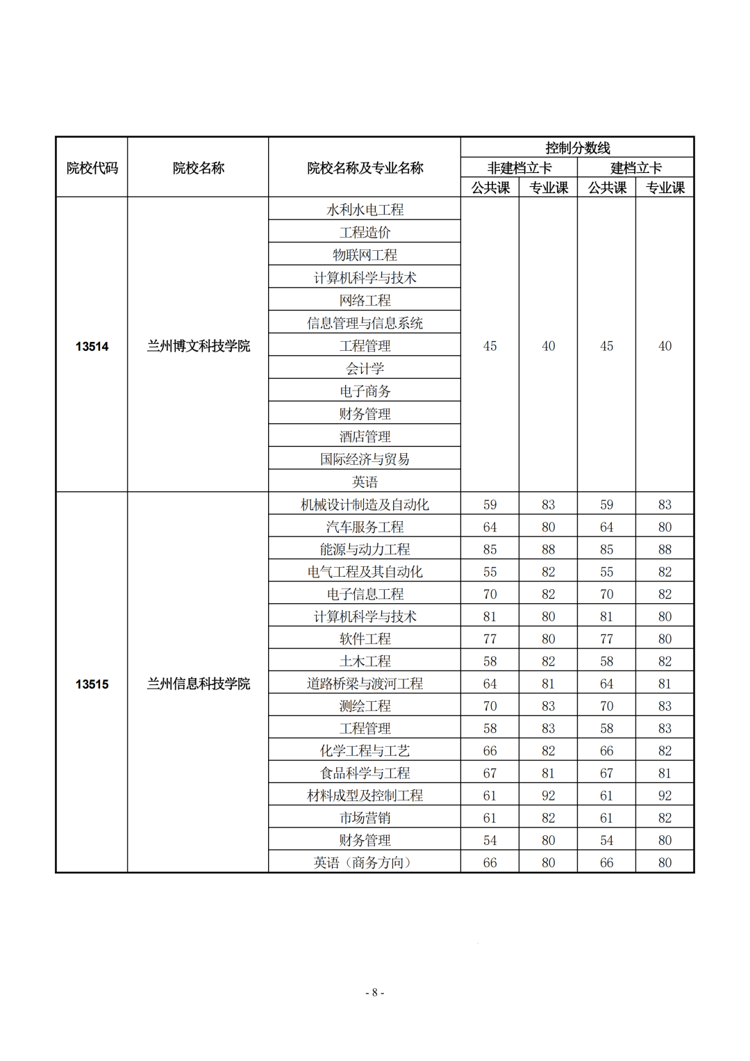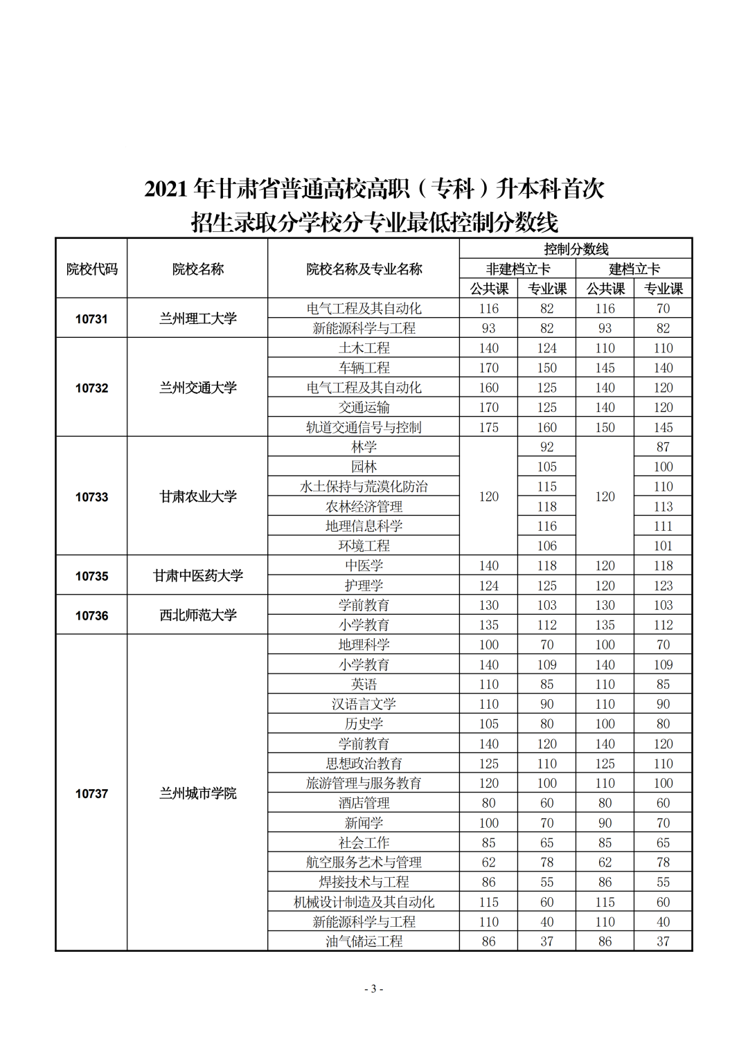 2021年甘肅省普通專升本首次招生錄取分?jǐn)?shù)線