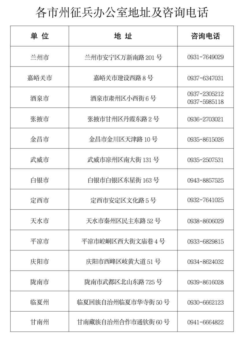 甘肅省人民政府征兵辦公室