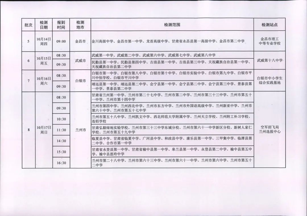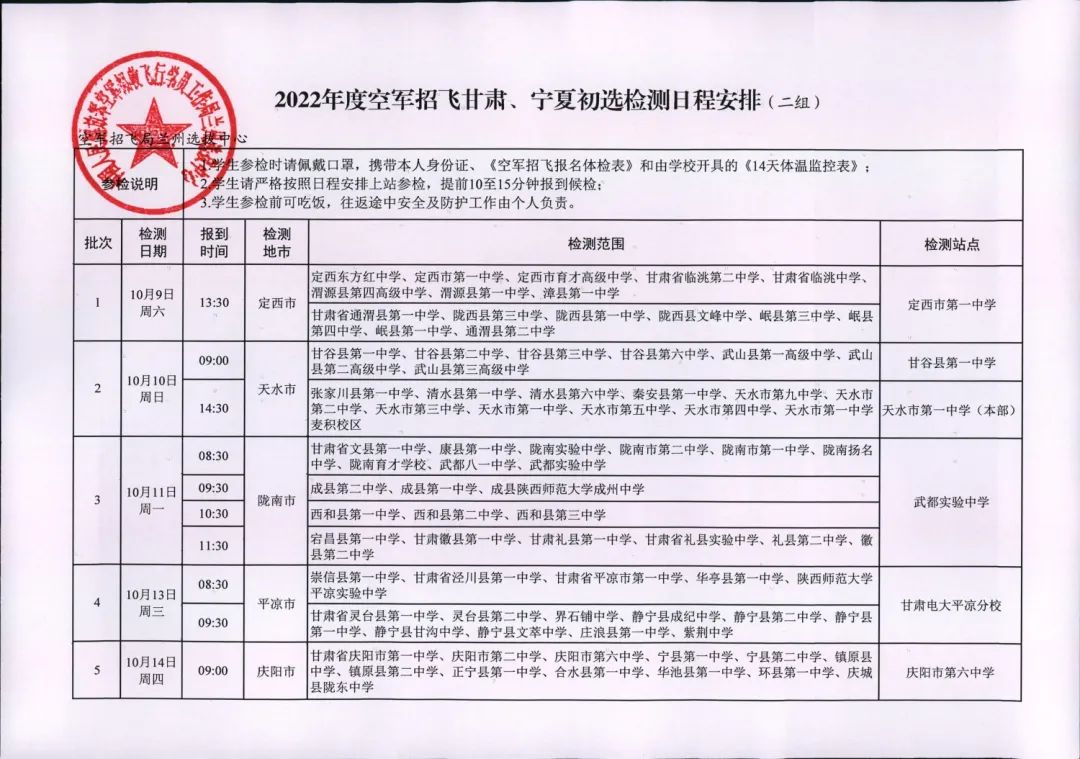 2022年度空軍招飛甘肅、青海初選檢測日程安排