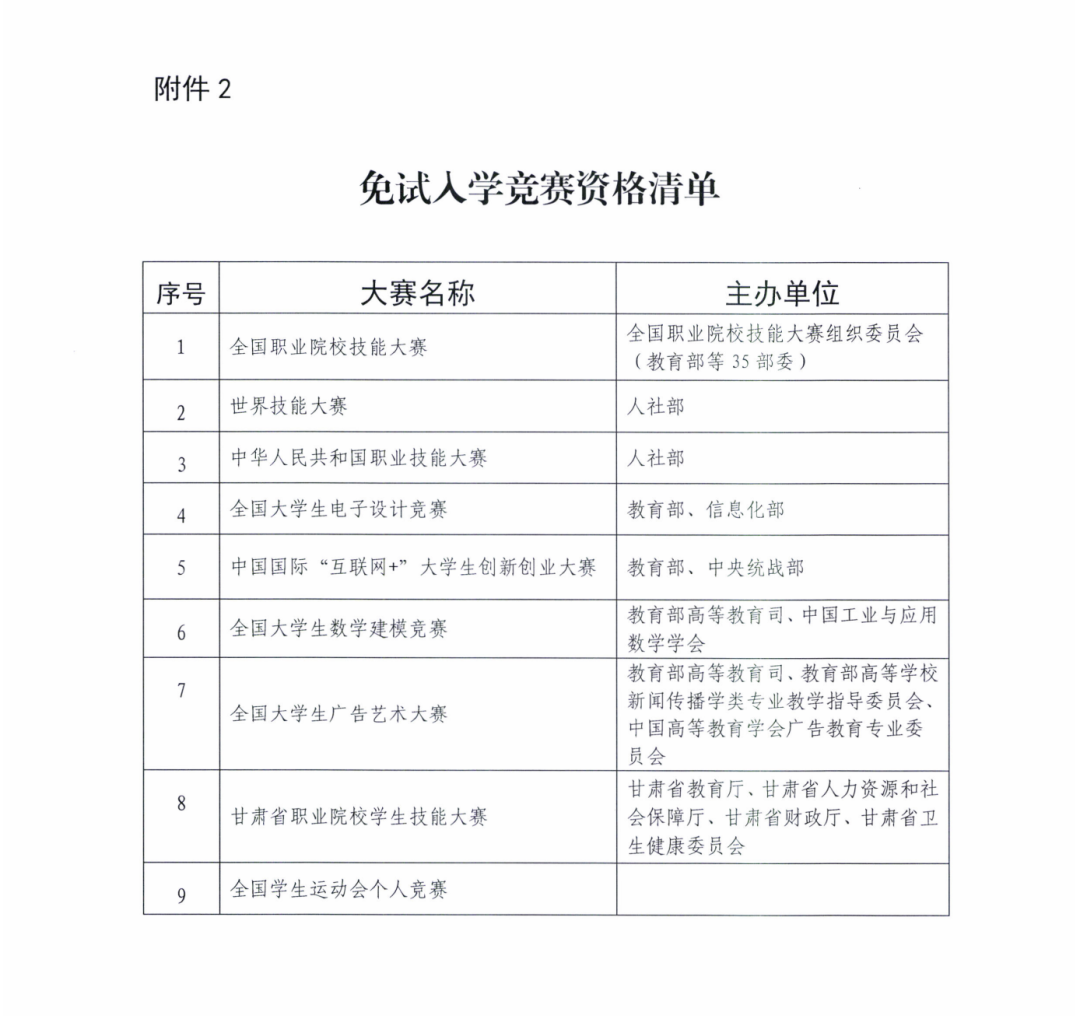 4. 在甘肅省職業(yè)院校學(xué)生技能大賽中獲得個(gè)人一等獎(jiǎng)的應(yīng)屆畢業(yè)生(附件2)。