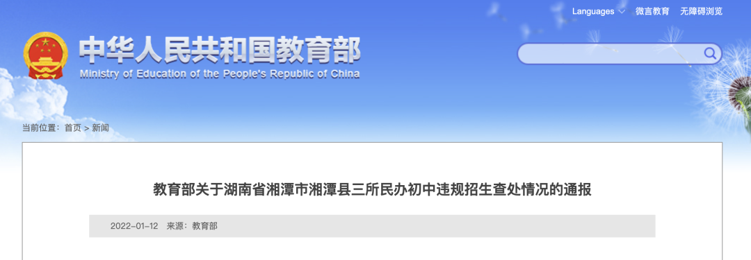 近日,教育部指導湖南省教育廳查處了湘潭市湘潭縣三所民辦初中違規(guī)招生問題,現(xiàn)就有關情況通報如下。