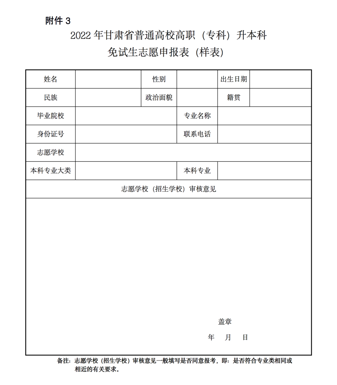 1.2022年甘肅省普通高校高職(專科)升本科免試生資格審核表(樣表)