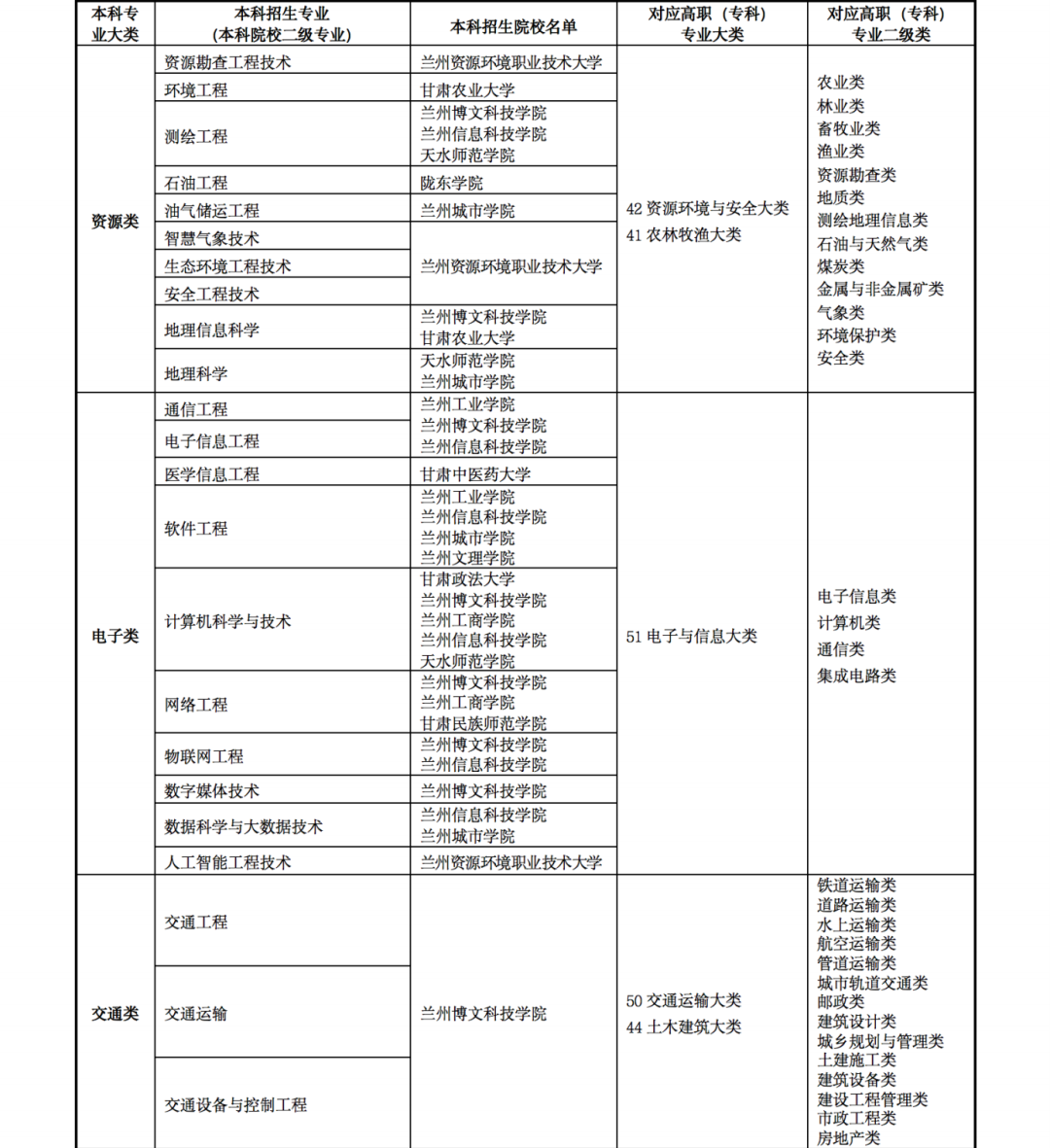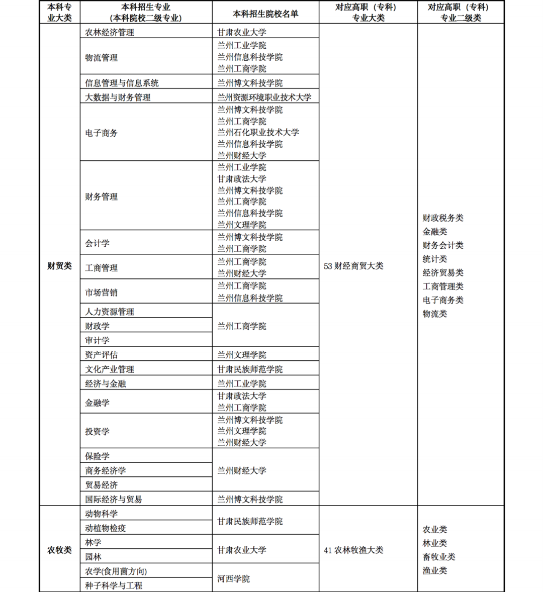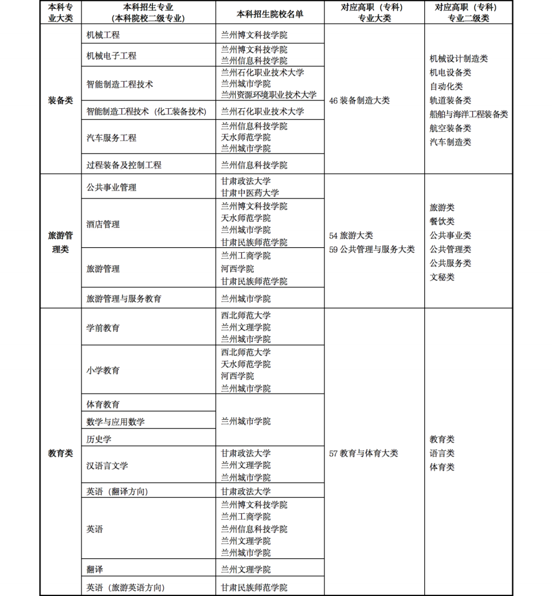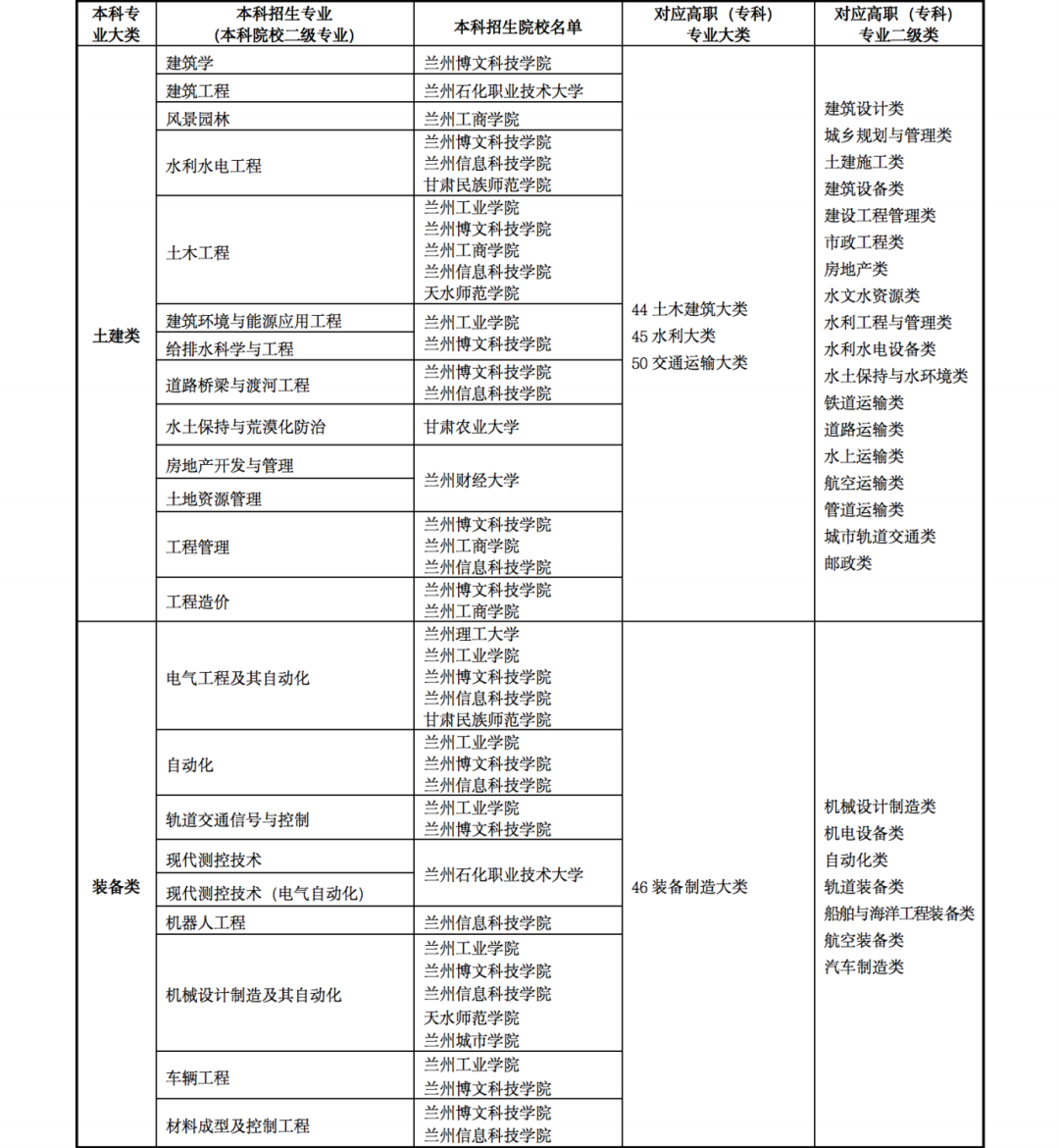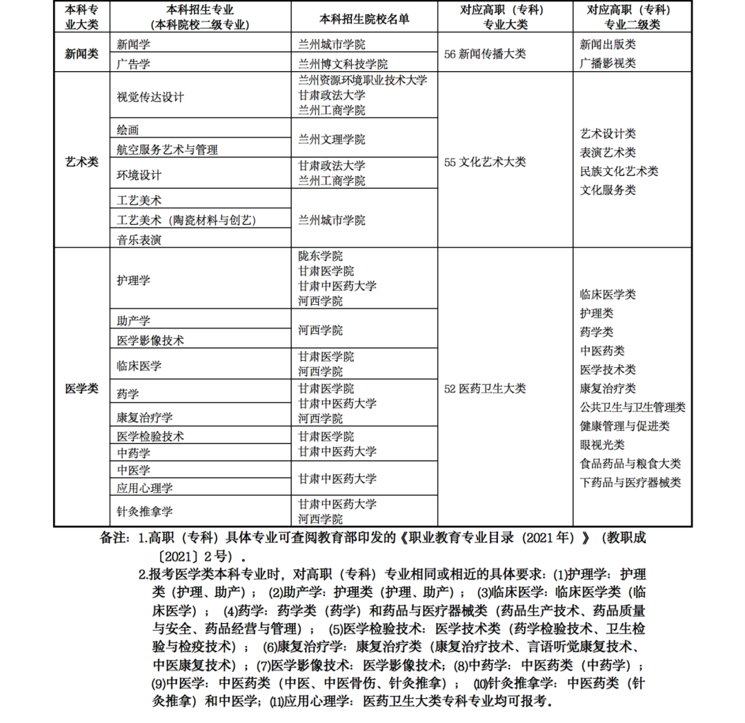 5.2022年甘肅省普通專升本高職(??疲┖捅究茖I(yè)大類對照表以及免試生招生學校及專業(yè)目錄