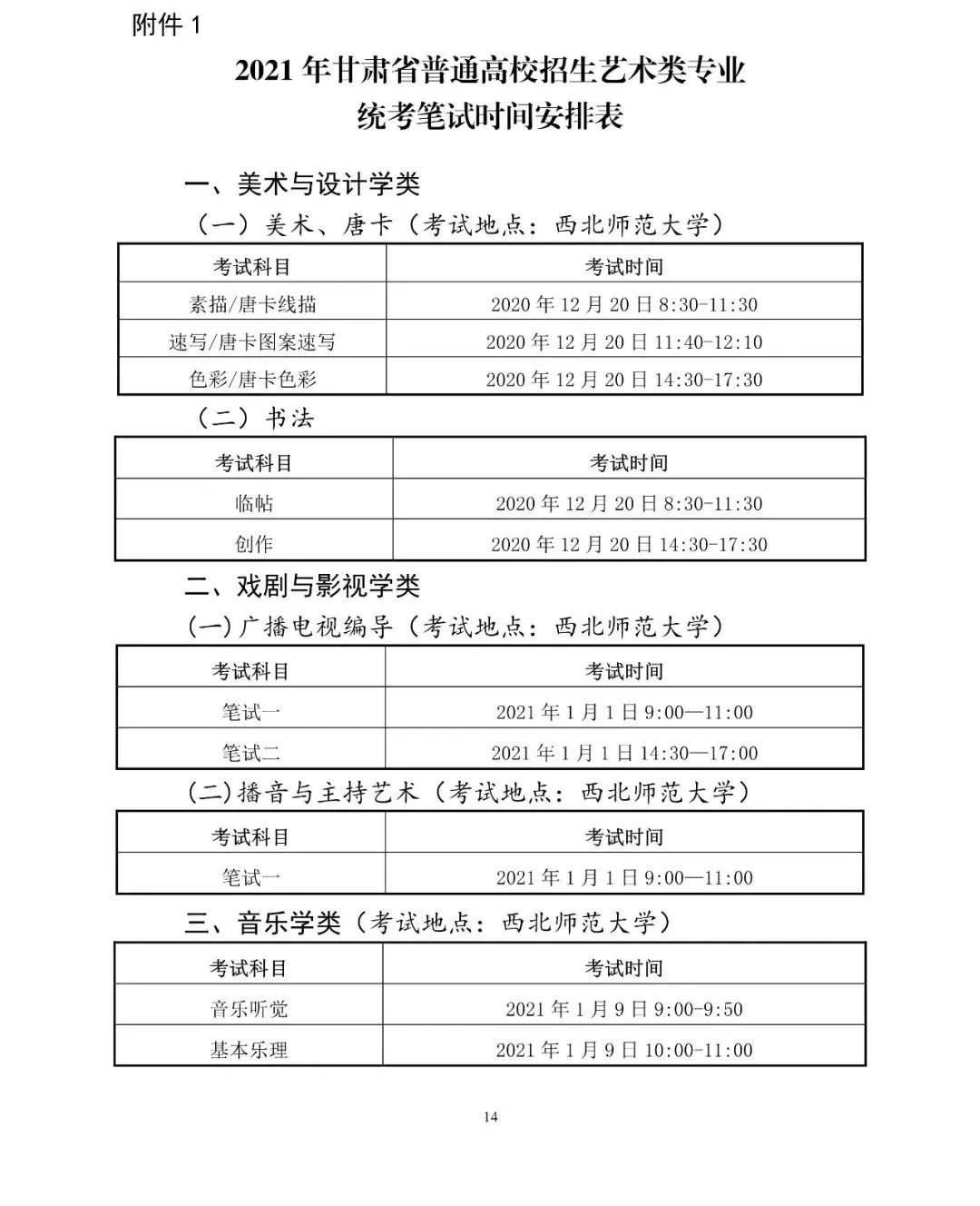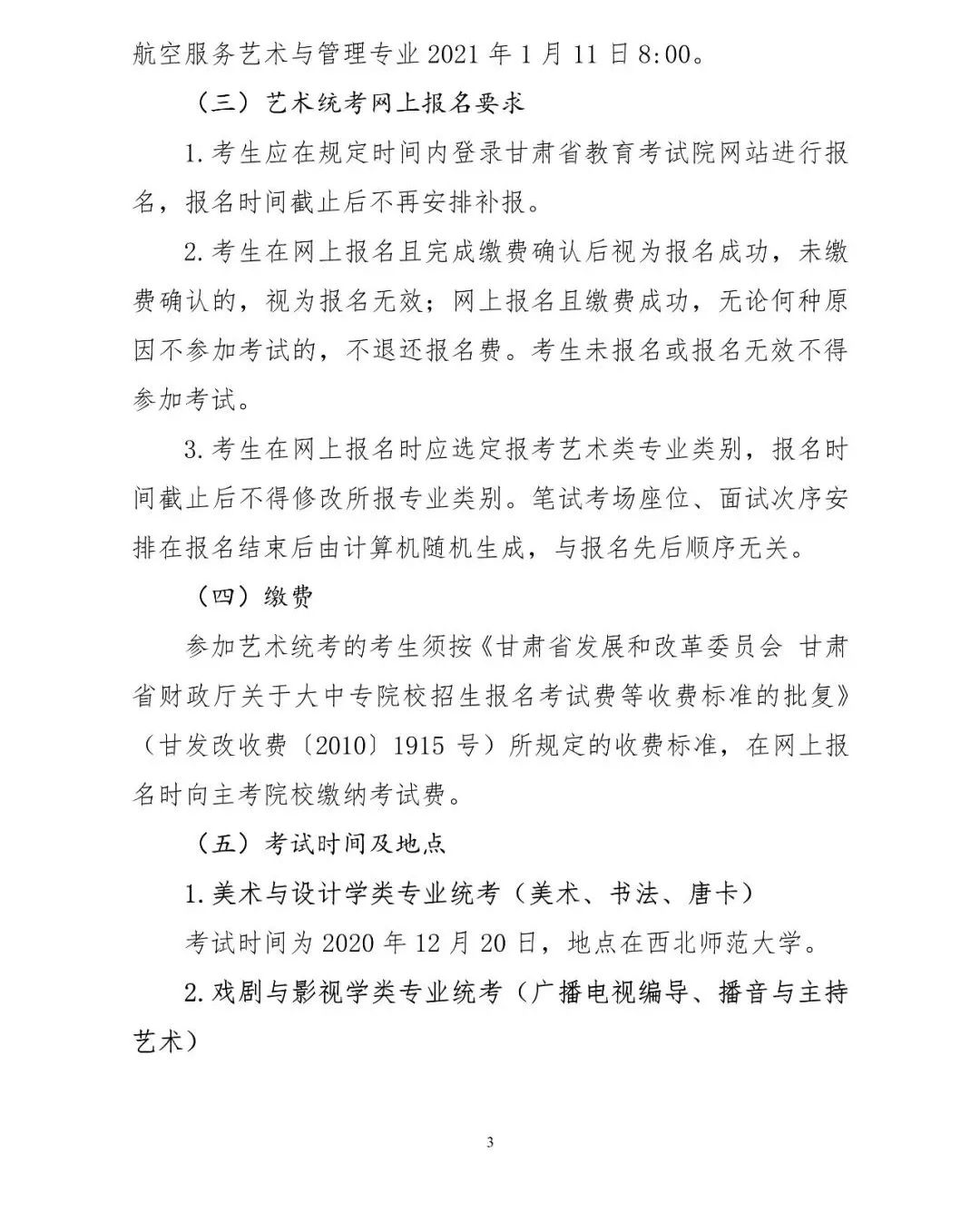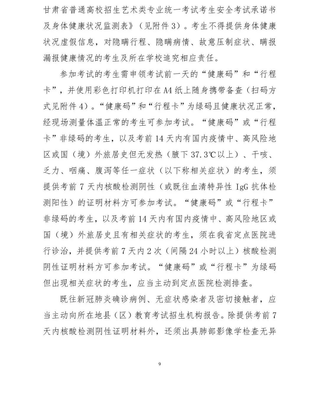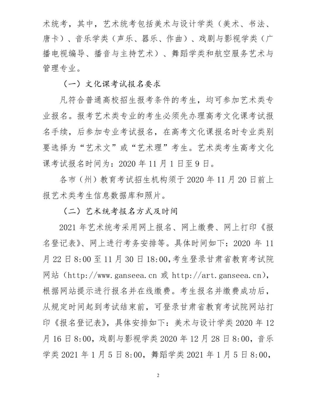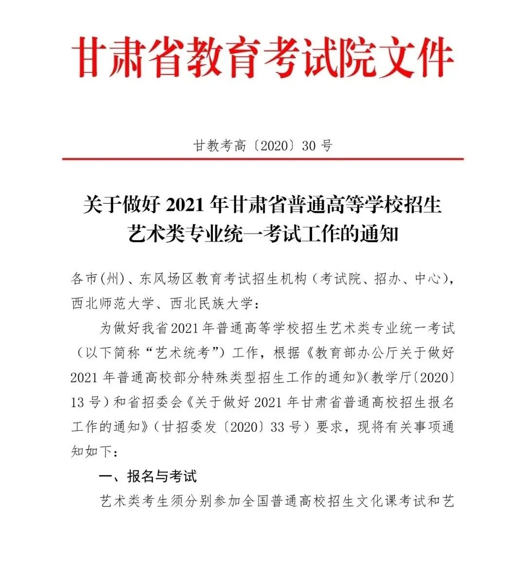 甘肅省2021年藝術類專業(yè)課統(tǒng)一考試通知