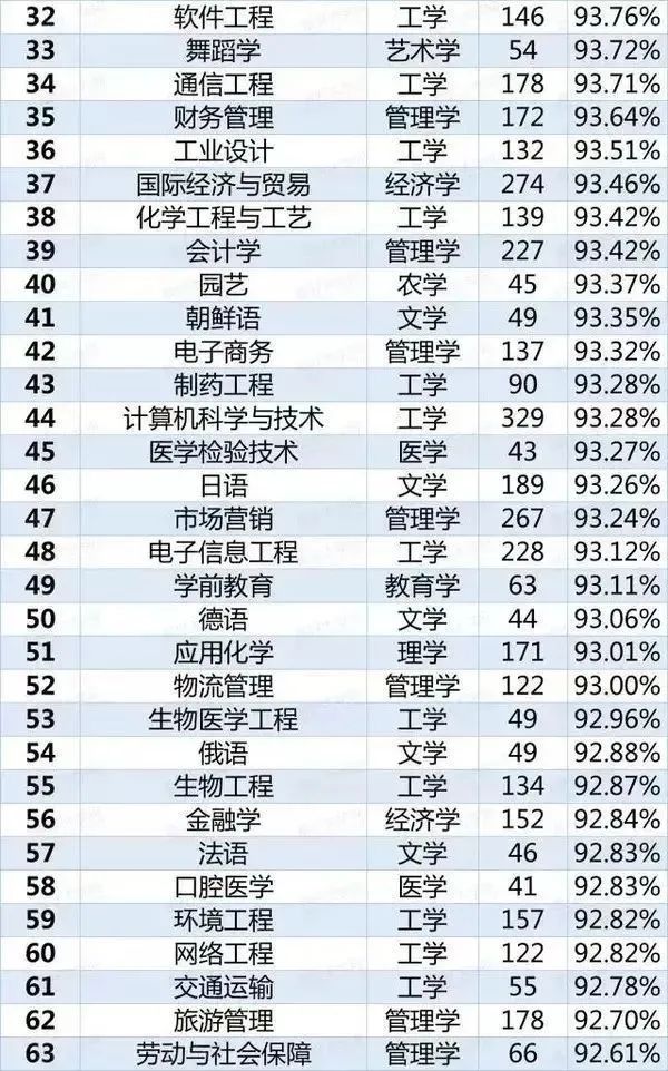 且由于各個(gè)專業(yè)的畢業(yè)生人數(shù)不同,企業(yè)的需求也不同,所以各個(gè)專業(yè)的就業(yè)率情況也存在著很大的差異。