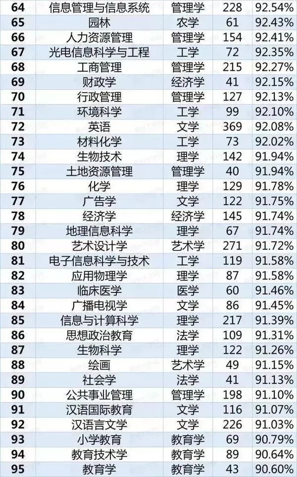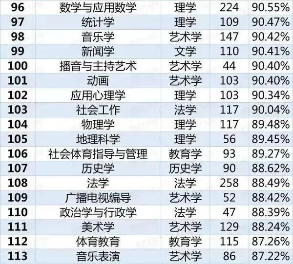其中,歷史學(xué)、音樂(lè)表演、法學(xué)連續(xù)三屆紅牌。