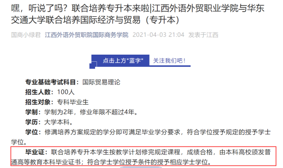 不少地區(qū)的聯(lián)合培養(yǎng)在招生對(duì)象、考試內(nèi)容、錄取原則、學(xué)籍學(xué)歷等方面,與我們了解的專升本并無區(qū)別,最終都是由本科高校頒發(fā)普通高等教育本科畢業(yè)證書,并授予學(xué)士學(xué)位。江西省教育廳發(fā)布的《關(guān)于規(guī)范普通高校專升本學(xué)生教育管理工作的通知》也明確,專升本聯(lián)合培養(yǎng)專業(yè)畢業(yè)證書不得標(biāo)注聯(lián)合培養(yǎng)高職(??疲┰盒!?/p>