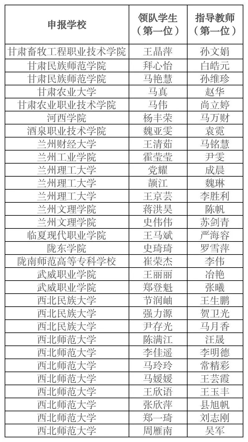 全國(guó)名單公布,甘肅16所大學(xué)30支團(tuán)隊(duì)入選!