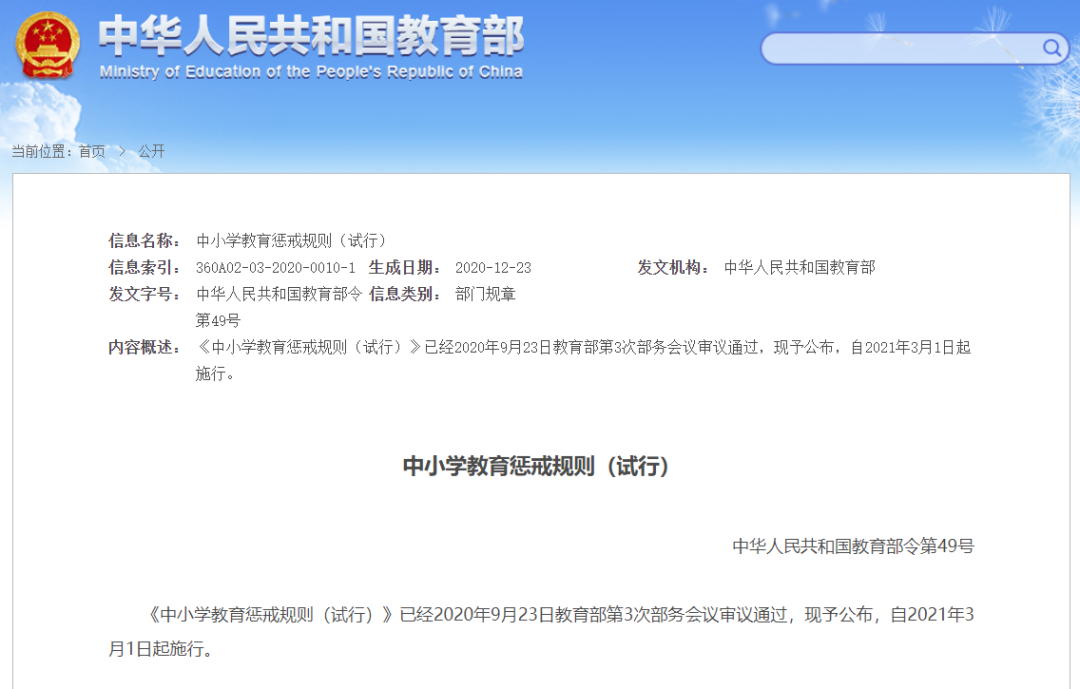 教育部最新出臺的《中小學教育懲戒規(guī)則(試行)》,將于3月1日起實施,明確學校、教師可以依法依規(guī)對學生實施懲戒教育。圍繞教育懲戒,社會上又掀起了新一輪熱議。