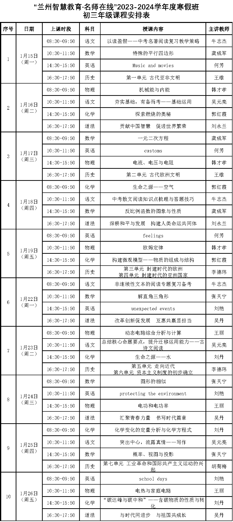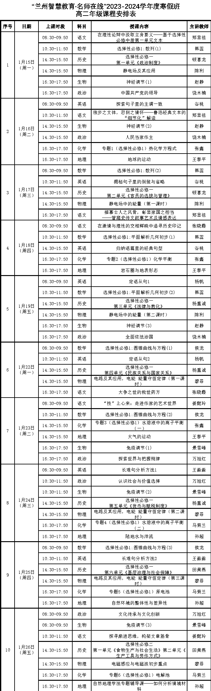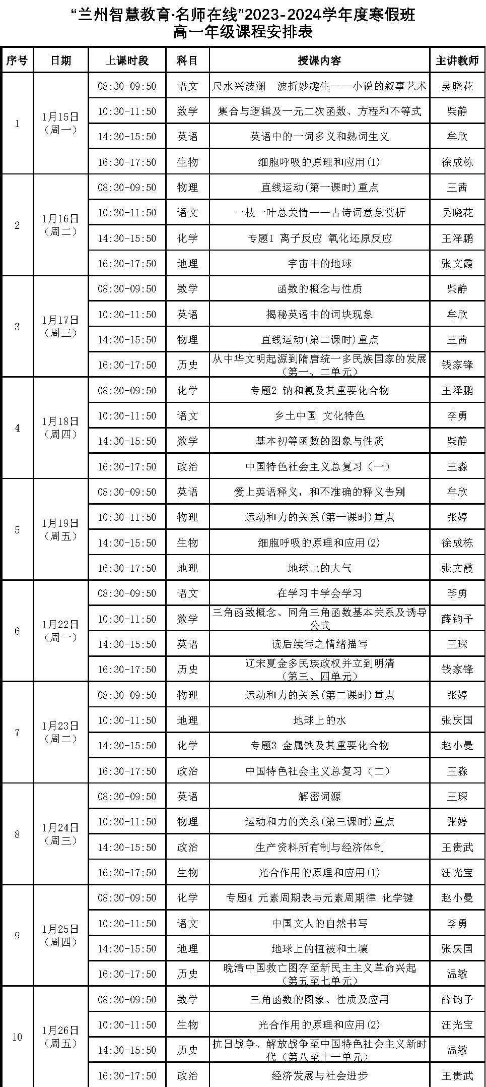 經(jīng)過一個學(xué)期緊張忙碌的學(xué)習(xí)生活后,蘭州市中小學(xué)生將迎來寒假。為輔助學(xué)生假期鞏固課業(yè),“蘭州智慧教育·名師在線”2023-2024學(xué)年度寒假公益類課程將于1月15日正式開播。