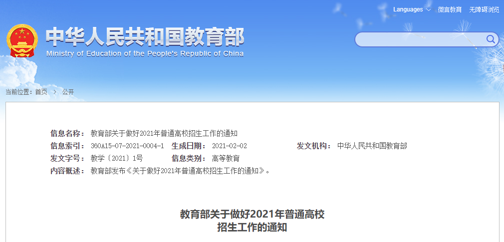 附件:2021年普通高等學(xué)校招生工作規(guī)定
