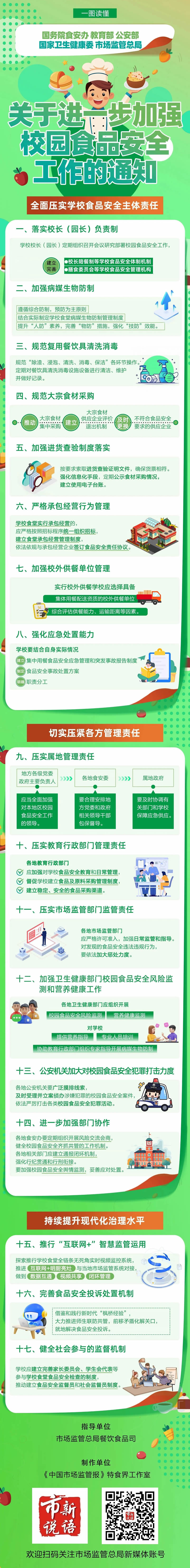 國務(wù)院食安辦近日聯(lián)合教育部、公安部、國家衛(wèi)生健康委、市場監(jiān)管總局印發(fā)《關(guān)于進(jìn)一步加強(qiáng)校園食品安全工作的通知》,部署各地進(jìn)一步健全校園食品安全全鏈條防控風(fēng)險(xiǎn)的制度機(jī)制,強(qiáng)化校園食品安全保障。跟教育小微一起去看看——