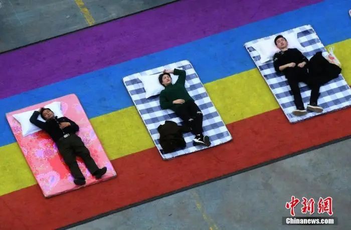 資料圖:市民用露天大睡公益行為藝術(shù)的方式迎接世界睡眠日的到來。陳超 攝