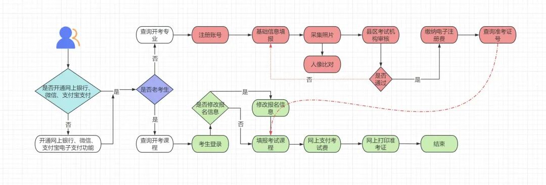 3.老考生需在報名系統(tǒng)下填報課程,通過微信、支付寶掃碼支付或網(wǎng)上銀行進(jìn)行在線支付,完成網(wǎng)上報考。