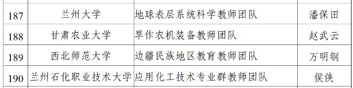 近日,教育部公布第三批“全國高校黃大年式教師團隊”創(chuàng)建示范活動認定名單和第四批“全國高校黃大年式教師團隊”創(chuàng)建示范活動入圍名單,其中甘肅8個團隊進入名單。