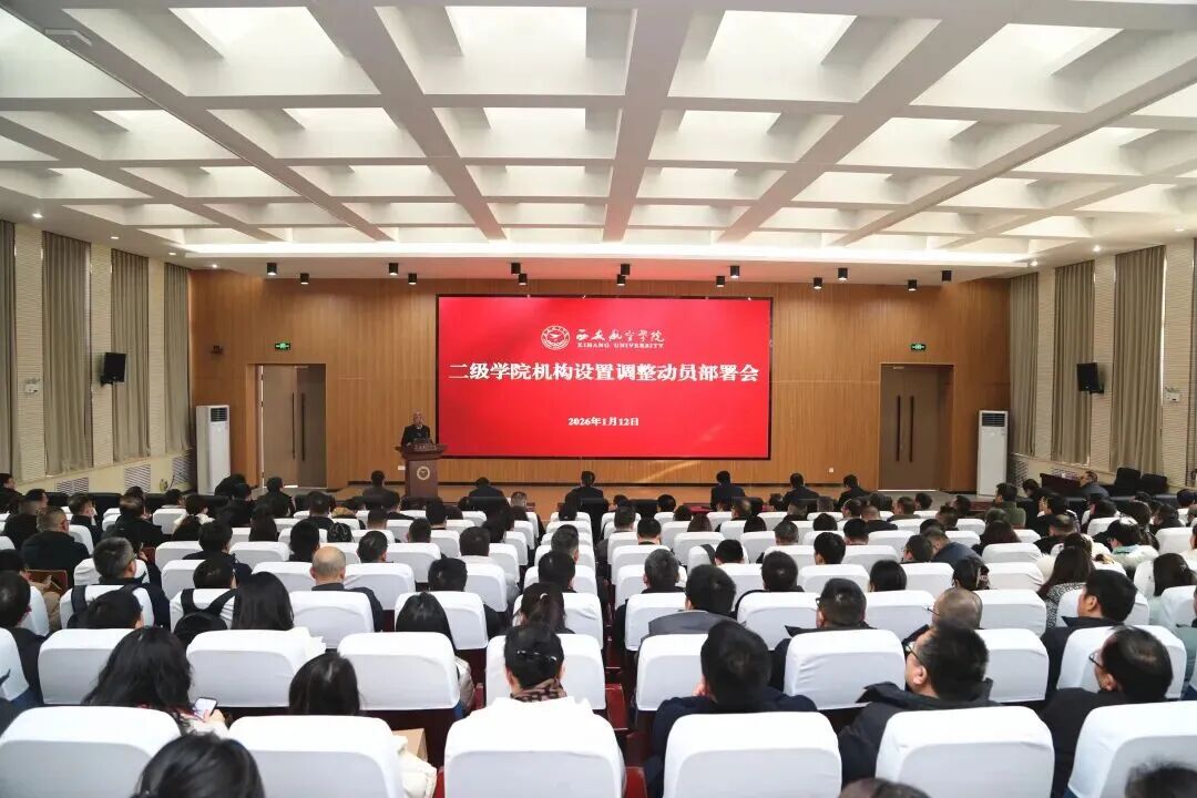 黨委書記祁玉龍在講話中充分肯定了去年以來學(xué)校改革發(fā)展的成效。祁玉龍強調(diào),黨委推進學(xué)科專業(yè)一體化改革,以二級學(xué)院調(diào)整為突破口,牽引辦學(xué)治校與立德樹人系統(tǒng)性改革,是關(guān)乎學(xué)校當(dāng)下突破與長遠(yuǎn)發(fā)展的戰(zhàn)略抉擇,彰顯了學(xué)校開年即決戰(zhàn)的決心。祁玉龍要求,要提高政治站位,立足國家戰(zhàn)略、產(chǎn)業(yè)需求與學(xué)校發(fā)展實際,深刻認(rèn)識改革的重要意義,深化“以服務(wù)求支持、以貢獻謀發(fā)展”理念,以壯士斷腕決心推進改革,努力交出不負(fù)時代、不負(fù)師生的答卷。要聚焦核心任務(wù),緊扣升格航空航天大學(xué)要求,持續(xù)優(yōu)化學(xué)科專業(yè)布局,聚焦“13512”思路,推動學(xué)科專業(yè)、師資、科研平臺一體化配置,構(gòu)建特色二級學(xué)院發(fā)展體系,深化校企合作、產(chǎn)教融合。要抓牢關(guān)鍵環(huán)節(jié),統(tǒng)籌推進改革舉措,壓實工作責(zé)任,樹立實績導(dǎo)向,優(yōu)化資源配置,健全動態(tài)發(fā)展機制。要強化責(zé)任擔(dān)當(dāng),凝聚改革合力、提升執(zhí)行效能、嚴(yán)守各項紀(jì)律,確保機構(gòu)調(diào)整與資源整合規(guī)范有序。祁玉龍希望,全校上下要以識變之智搶抓機遇,以應(yīng)變之策破解難題,以求變之舉開拓新局,向航空特色鮮明的高水平應(yīng)用型大學(xué)奮勇前行。