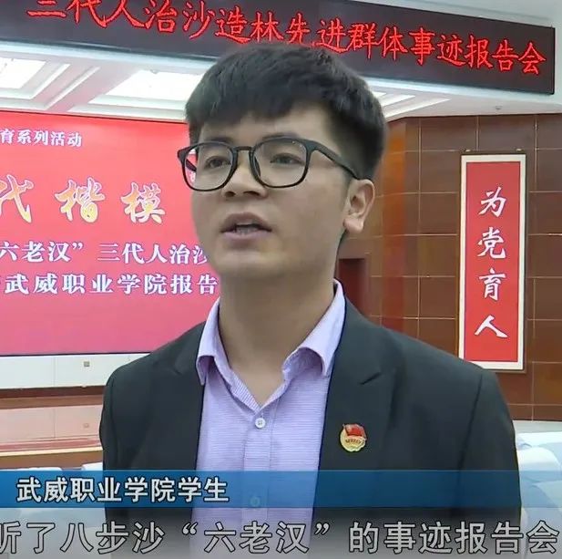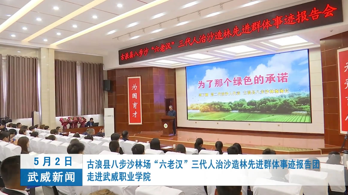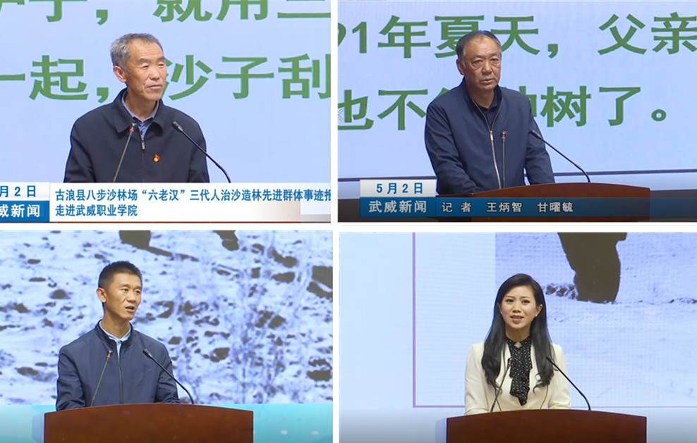 4月30日,八步沙林場“六老漢”三代人治沙造林先進群體事跡報告團受邀在武威職業(yè)學院作宣講報告,分享“六老漢”三代人艱苦奮斗、治沙造林的感人事跡。