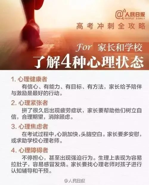 家長(zhǎng)要注意控制自己的情緒,安慰學(xué)生應(yīng)對(duì)各種煩惱,如:記憶力下降;水平不升反降;考場(chǎng)緊張;壓力和焦慮等。