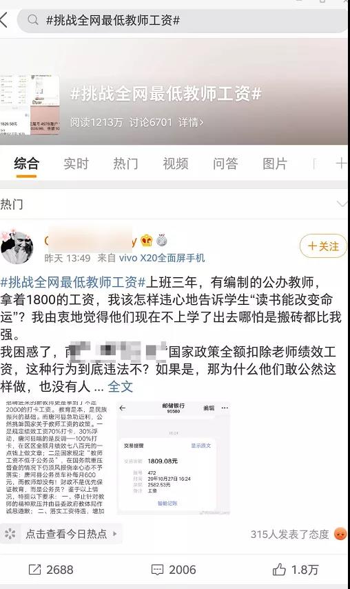 在今年兩會(huì)期間,“教師工資不低于公務(wù)員年底須完成”這個(gè)話題也一度沖上熱搜。