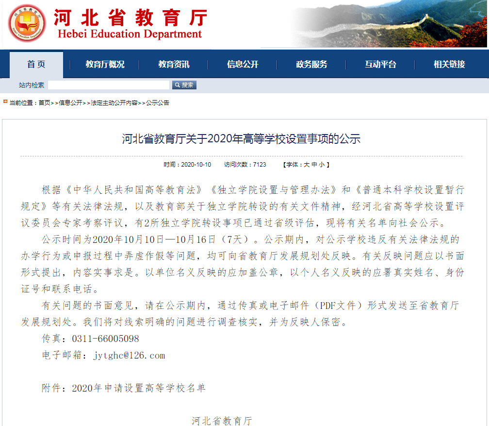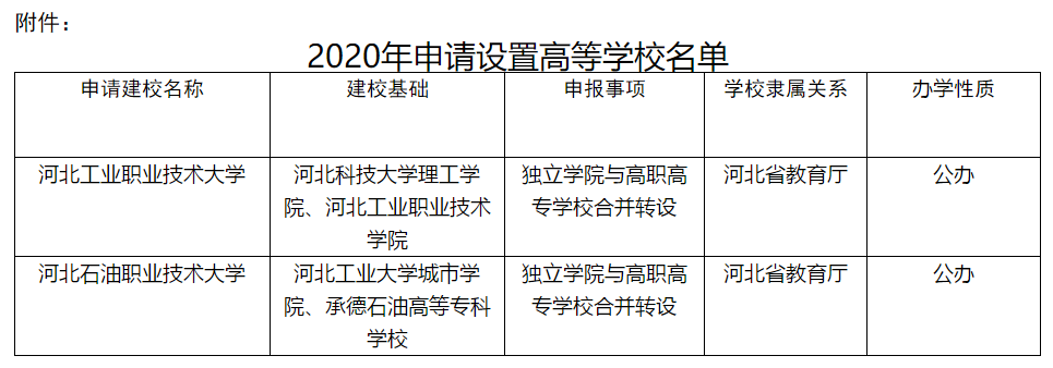 近日,河北省教育廳公布了《2020年申請設(shè)置高等學(xué)校名單》。