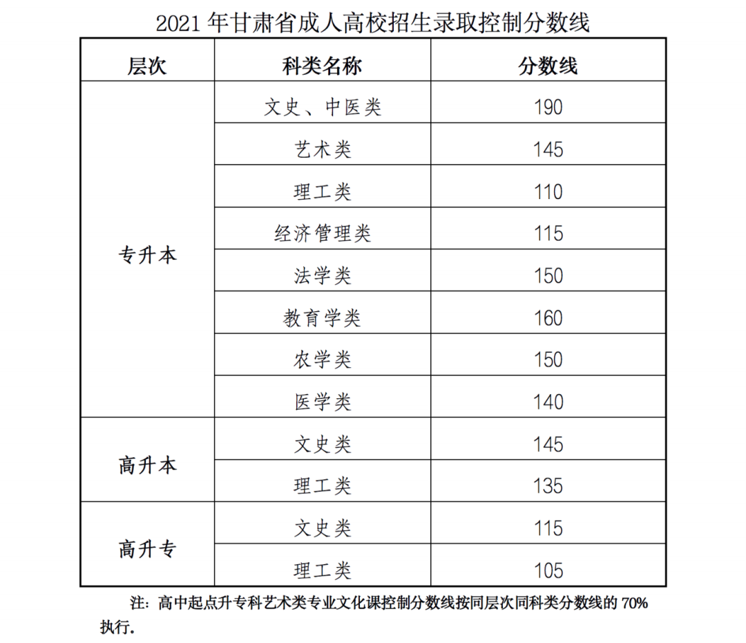 甘肅省2021年全國成人高考成績查詢的公告
