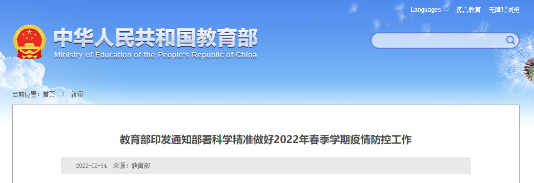 近日,教育部印發(fā)通知,部署各地教育部門和高??茖W(xué)精準(zhǔn)做好2022年春季學(xué)期疫情防控工作,確保安全開學(xué)。