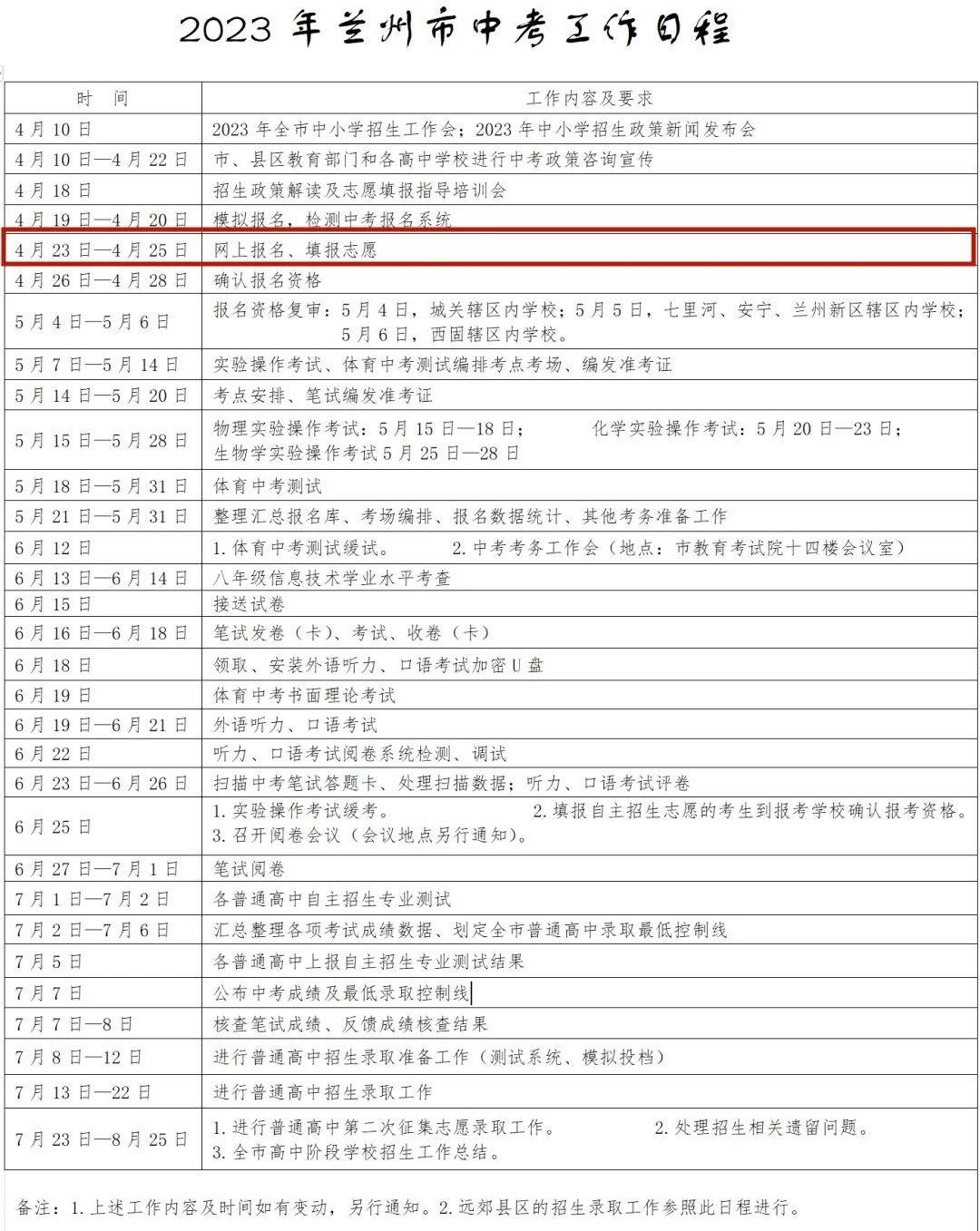 根據(jù)《2023年蘭州市中考工作日程》: