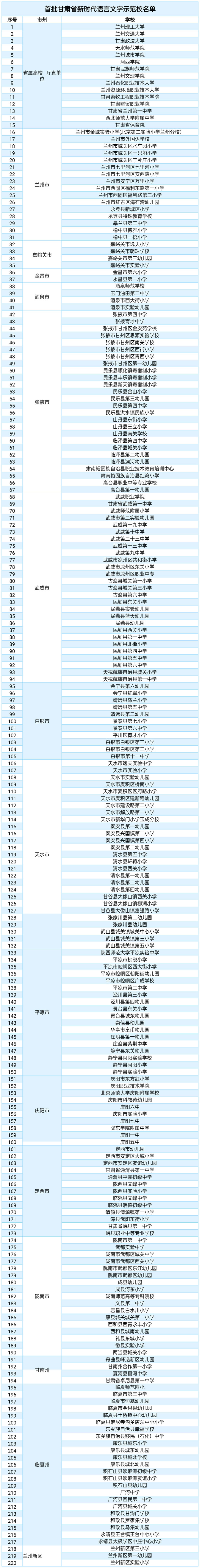 根據(jù)《甘肅省教育廳關(guān)于開展新時(shí)代語言文字示范校創(chuàng)建工作的通知》,在各學(xué)校創(chuàng)建、市(州)縣(市區(qū))評(píng)估、省級(jí)評(píng)估認(rèn)定的基礎(chǔ)上,經(jīng)省教育廳常務(wù)會(huì)議審議,擬命名蘭州理工大學(xué)等220所學(xué)校為首批“甘肅省新時(shí)代語言文字示范校”,現(xiàn)予以公示,接受廣大群眾監(jiān)督。